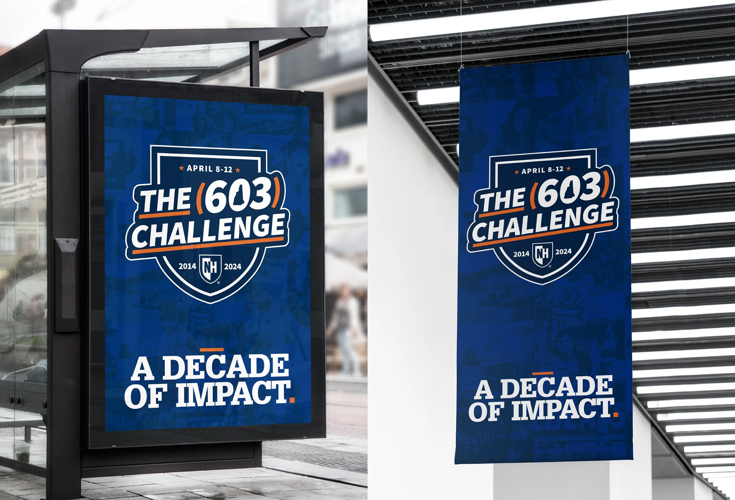 In addition, in April 2024, as an ongoing partner, FGI also worked with UNH to celebrate a decade of impact with a tailored, 10th anniversary (603) Challenge identity, to further honor this signature fundraiser. Our design solutions are dynamic, engaging, encouraging, and help UNH to achieve the most successful results and set new records year after year.